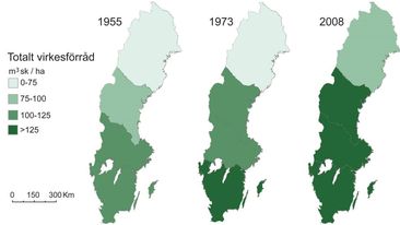 Meg kell nézni ezt a két évszázaddal ezelőtti svéd tájat ábrázoló képet és összehasonlítani a ma tapasztalhatóval. A törvény által a tulajdonosakra rótt kötelezettségek eredménye képpen az addig meghatározhatatlan minőségű tájkép karakterisztikusan szétvált az adott gazdálkodási feladatok szerint. Így ma egyértelműen elkülöníthetőek a mezőgazdálkodást, az erdőgazdálkodást és az ipari tevékenységet végző területek. Határa lett az erdőnek, ami a törvényi előírások hatására zártabbá és sűrűbbé vált. A növekmény magáért beszél: 1920-ban 1,66 milliárd m3, 2020-ban 3,5 milliárd m3 az élő fakészlet. Ennek egyik oka a törvényi szabályozás, amely racionalizálta a fahasználatot és kötelezően előírta a felújítást, magyarul vágásos erdőképet alakított ki. A másik a tőzeges területek ´30-as években kezdődő lecsapolása. Sok erdőterület fatermő képessége növekedett ezáltal, bizonyíthatóan, kutatások alapján ca 20%-kal növekszik a folyónövedék egy víztöbblettel bíró terület leárkolását követően. A harmadik növedéket segítő tényező az erdőtalajok trágyázása és lúgosítása (meszezés, hamuzás).