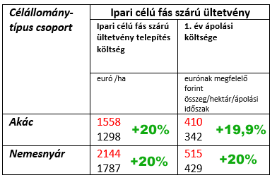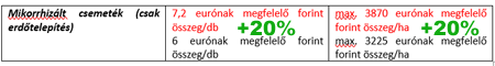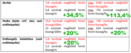 Az erdőtelepítésekre vonatkozó támogatási összegek 2019-ben történt emelését követően, most az ipari célú fás szárú ültetvények esetében is megnövekedett az igényelhető támogatás. Emellett tovább emelkedtek az egyes kiegészítő, önállóan nem támogatható tevékenységek egységárai is, mint a kerítés, padka és erdőszegély létrehozása és a mikorrhizált csemete alkalmazása erdőtelepítésnél, valamint kerítés létesítése ipari célú fás szárú ültetvény esetén.