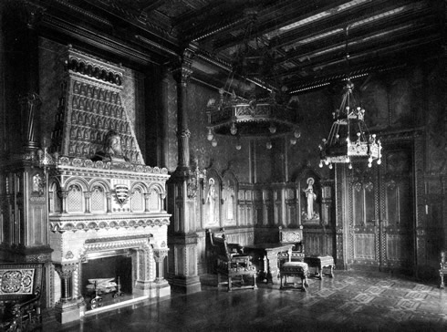 A terem rekonstrukciójának következő szakaszában a pazar falburkolatot alakítják ki: a 2,4 méterig magasodó faragott díszítéses, aranyozott faburkolatot a felső sávban aranyhímzésű szövettel burkolt részek egészítik ki egészen 5 méteres magasságig.