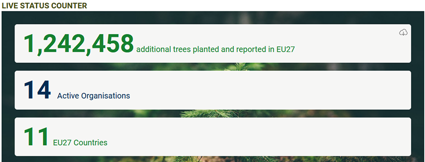 Az EU-ban a becslések szerint 2010 és 2015 között évente közel 300 millió fa nőtt. A cél ennek a számnak a megduplázása, hogy elérjük az évi 600 millió növekvő fát.