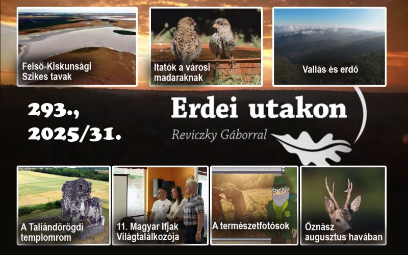 Kirándulás a Felső-Kiskunsági Szikes tavakhoz / Itatók a városi madarak szolgálatában / Nemzeti Kincsünk az Erdő – Vallás és erdő / A Taliándörögdi templomrom múltja és jelene / 11. Magyar Ifjak Világtalálkozója / Erdő Ernő bácsi meséi – A természetfotósok / Vadvilág – Őznász augusztus havában
