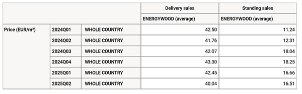 A lábonálló-faaanyag értékesítésben a fakitermelési melléktermékek (törzsről eltávolított gallyak) országos átlagára 15%-kal emelkedett az előző negyedévhez képest, és 16,22 euró/m3-ra nőtt, míg a gallyazott törzsek ára 8%-kal, 22,83 euró/m3-ra csökkent. A szállítási értékesítésben a fakitermelési melléktermékek átlagára 2%-kal, 31,01 euró/m3-ra csökkent, a gallyazott törzsek ára pedig változatlanul 45,82 euró/m3 maradt.