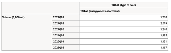 2025. II. negyedévében Finnországban összesen 1,2 millió m3 energetikai célú fanyagot vásároltak, ami 50%-os csökkenést jelent az előző év azonos időszakához képest, és 25%-os csökkenést az ötéves átlaghoz képest. A mennyiség kétharmadát fakitermelésből származó maradékok tették ki, a Finn Természeti Erőforrások Intézet (Luke) adatai szerint.