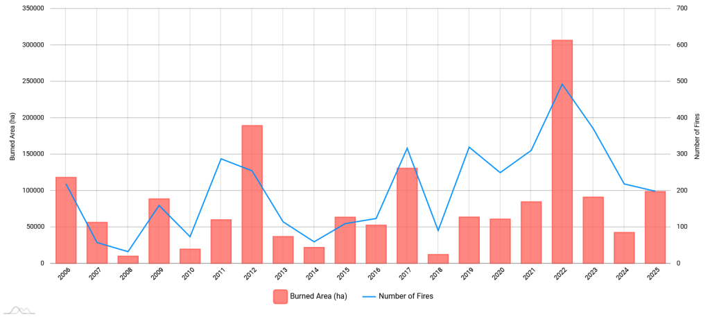 Fires mapped in EFFIS of approx. 30 ha or larger.