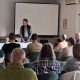 Dr. Honfy Veronika, a Soproni Egyetem Erdészeti Tudományos Intézetének tudományos munkatársa a fásítások és az agrárerdészeti rendszerek termőföld védelemben betöltött szerepét mutatta be, különös tekintettel a mezővédő erdősávokra. Az előadás áttekintést nyújtott a sávok történetéről, típusairól, a fafajválasztásról, valamint a mezővédő erdősávok létesítésének előnyeiről, kitérve a megfontolandó szempontokra is. Elhangzott, hogy a fásítások számos ökoszisztéma szolgáltatást nyújtanak: a szél sebességének mérséklése által hatékonyan csökkentik a talajeróziót és javítják a mikroklímát. A fásítások az élőlényeknek táplálékforrást és búvóhelyet biztosítanak, növelik a biodiverzitást. A megfelelően tervezett sávok a védett területeken kedvezőbb termőfeltételeket teremtenek, ami hozzájárulhat a magasabb mezőgazdasági hozamokhoz is. Szó esett a gyakorlati megvalósítás lépéseiről, és a kapcsolódó támogatási lehetőségekről. Fontos üzenete volt az előadásnak, hogy a tervezés során célszerű erdészeti szakértőt is bevonni, valamint a növényvédelmi szempontokra is kiemelt figyelmet kell fordítani.