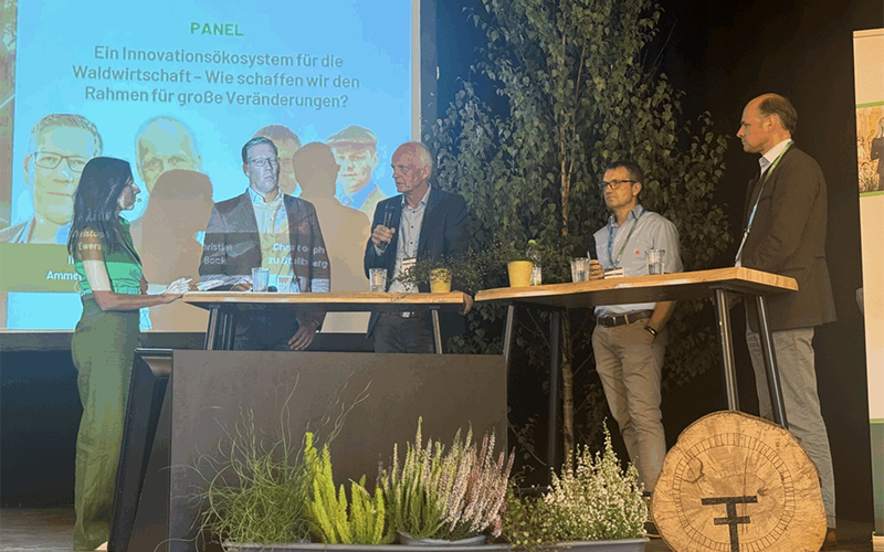 A nyitó panelbeszélgetésen Christoph Ewers, a DFWR alelnöke; Ingo Ammermann (NABU); Dr. Christian Bock (Landwirtschaftliche Rentenbank) és Christoph zu Stolberg (Future Forest Initiative) társaságában vitatta meg a kérdést.