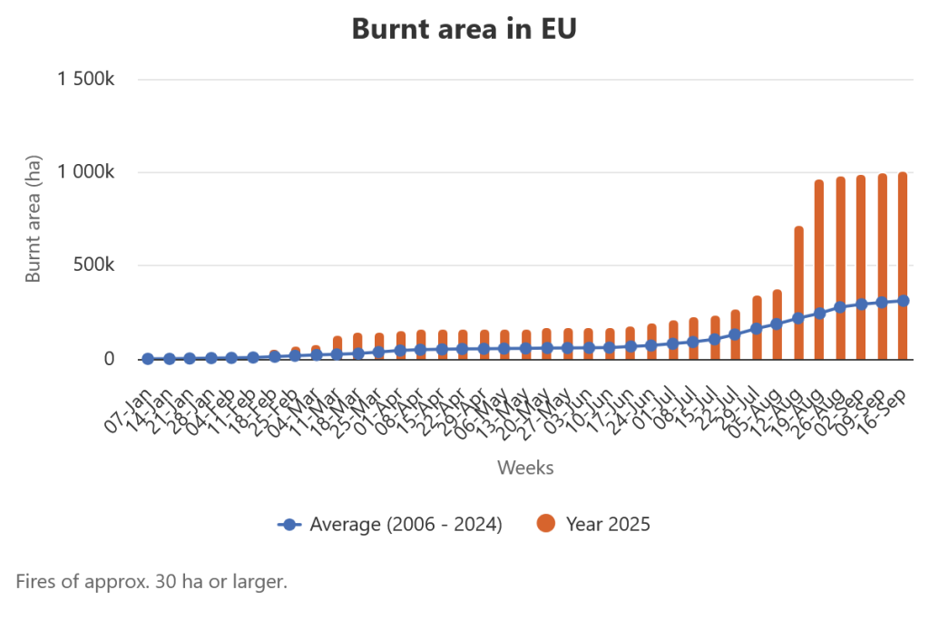 Az erdőtüzek helyzete az EU-ban – aktualizált változat: 2025. szeptember 16.