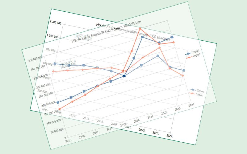 Importban fűrészáru a legnagyobb értéket képviselő tétel. Ennek behozatali értéke 2023. után 2024-ben tovább csökkent. Sokkal kisebb érték mellett a hengeresfa import is második éve csökken.