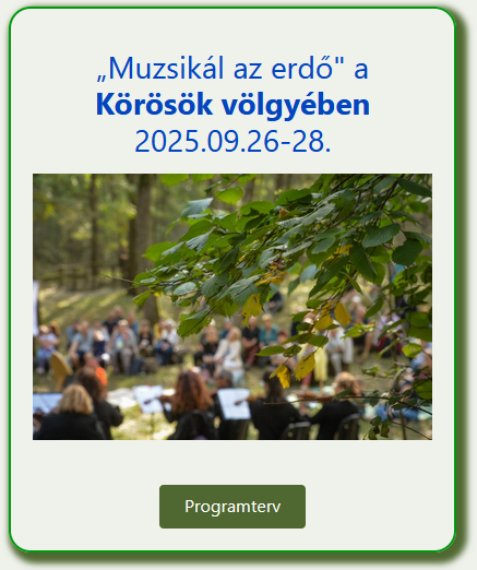 2025. szeptember 26-28-a között várja az érdeklődőket a „Muzsikál az erdő” a Körösök völgyében. Pénteki programjai a gyulai Almásy-kastély parkjában platán óriásokkal övezve, a szombati rendezvény Gyula – Városerdő tölgy-kőris-szil erdejében, a vasárnapi pedig határon túl, Nagyvárad közelében, új helyszínen Szentjobb település püspökségi tölgyeseinek lombkoronája alatt valósul meg. 2015 óta évről évre jelentkezik a rendezvénysorozat ebben a térségben, az erdő és a művészetek kedvelői várják, az érdeklődés egyre széleskörűbb.