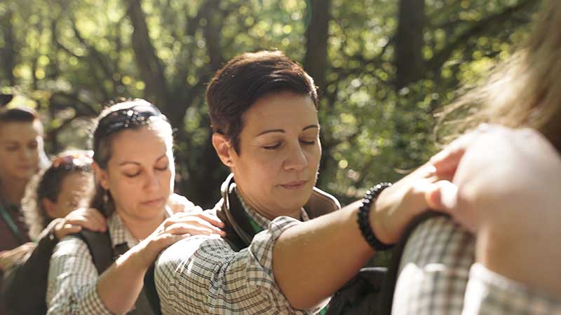 Bernd Nold német erdőpedagógus workshopján a résztvevők megtapasztalhatták, hogy az erdőpedagógiai tevékenységek teret biztosíthatnak a lassulásnak, a belső nyugtalanság csillapításának és az alapvető bizalom erősítésének. Az erdő teret ad az érzékszervi élményeknek, érzéseknek, intuíciónak és inspirációnak.