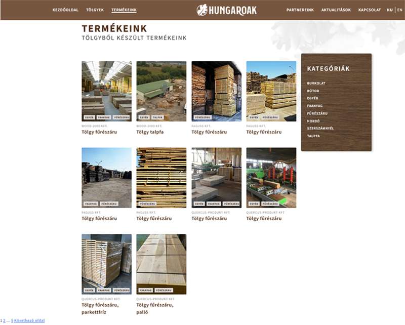 Az oldalra feltöltött faanyagok, fatermékek kategóriák szerint, és partnerenként is áttekinthetőek., mindegyikhez részletes termékleírás is közzé-tehető.