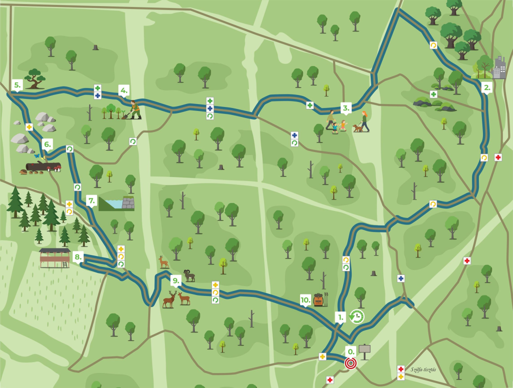 - érinti a terület különleges erdei élménypontjait, például a kilátóteraszt és a karsztbokor-erdő jellegű élőhelyeket, valamint