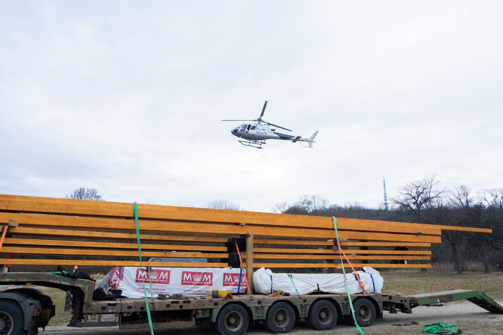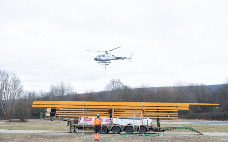 Helikopterrel szállították a Várhelyre az épülő új kilátó szerkezeti elemeit