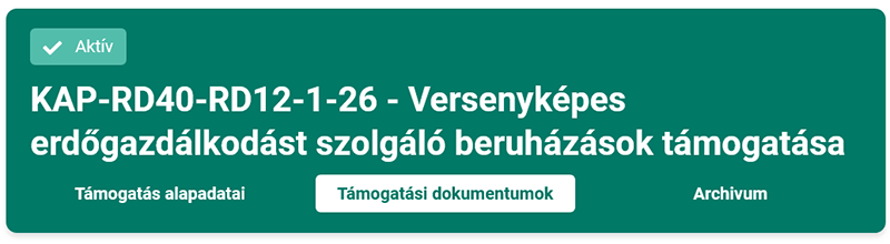 Támogatás megnevezése: Versenyképes erdőgazdálkodást szolgáló beruházások támogatása