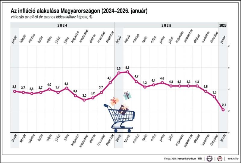 2026. januárban a fogyasztói árak átlagosan 2,1%-kal haladták meg az egy évvel korábbiakat, miközben a tűzifa ára 2,92%-kal csökkent. Egy hónap alatt átlagosan 0,3%-kal emelkedtek a fogyasztói árak.