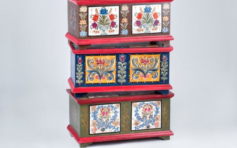 A kiállításon együtt van az a szakember gárda, aki tovább éltette, vagy újraélesztette a bútorfestés hagyományát és az a feltörekvő bútorfestő nemzedék, akik lelkesen kutatnak és alkotnak, sokszor mester és tanítványként. A kiállítás résztvevői népi bútorfestők szerte a Kárpát-medencéből, elismert mesterek, népi iparművészek és különböző tapasztalattal rendelkező, népi bútorfestésben jártas 52 alkotó Erdélyből, Felföldről, Délvidékről és Magyarországról. Az alkotókat igény szerint kísértük végig egy több, mint egy éves programon, ahol a felmerülő esetleges elakadásokon segítettük túljutni őket azoknak, akiknek erre szükségük volt, a tervezéstől, az asztalossal való kommunikáción át a bútorfestés útvesztőin keresztül az egész bútorfestés folyamatán a végcélig. Munkájukat kutatómunka előzte meg. A kutatásban és megvalósításban számos szakember segítette önzetlenül munkánkat. A tárlaton 59 láda kerül bemutatásra.