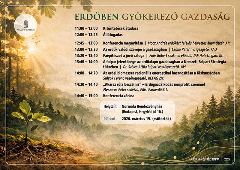 2026-ban az Erdők Nemzetközi Napjának tematikája az ENSZ által kiadott „Erdők és gazdaság” témakörét járja körül. Ez alkalomból az Agrárminisztérium Erdőkért és Földügyekért Felelős Államtitkársága konferencia keretében kívánja bemutatni és hangsúlyozni az erdők nemzetgazdaságban betöltött sokrétű szerepét, kiemelve azok egyéb jólléti és értékteremtő funkcióit.