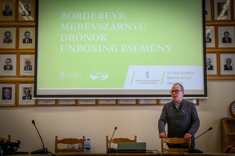 Csúcstechnológiás drónflotta a Soproni Egyetemen: Katonai precizitás az erdők felett. A napokban különleges unboxing eseménynek lehettek tanúi kollégáink, hiszen  megérkeztek egyetemünkre a BorderEye projekt legmodernebb merevszárnyú drónjai, amelyek képesek órákon át a levegőben maradni és a legkisebb változásokat is kiszúrni a talajon.