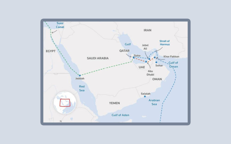 Dubaj és az Egyesült Arab Emírségek, amelyek gazdaságukat a turizmus és a kereskedelem regionális központjaként építették fel, azzal a előnnyel rendelkeznek, hogy kikötőik – Fudzsejra és Khor Fakkan – az Arab-tengeren, az Öbölön kívül helyezkednek el.