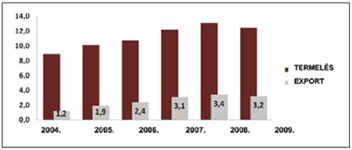 A gyártott mennyiség utóbbi években tapasztalt jelentős növekedésének köszönhetően Lengyelország - közvetlenül Olaszország után, Németország, Franciaország, Nagy-Britannia és Spanyolország mellett - ezen termékek egyik legnagyobb előállítójává vált az Európai Unióban. Becslések szerint országunkban az e termékek gyártásával foglalkozó összes vállalkozás értékesítési bevétele 2009-ben kb. 7,5 miliárd zł (486 milliárd Ft*) volt, annak ellenére, hogy gyártási kapacitásukat nem több, mint 73%-ban használták ki. Lengyelország nem azért tartozik a legnagyobb nyílászáró gyártók csoportjába, mert nagy az építőipari piaca, hanem azért, mert a fa- és műanyag ablakok export-volumenét tekintve elsők vagyunk az Európai Unióban. Épp az export növekedésének köszönhetően következett be a termelés határozott növekedése Lengyelországban az elmúlt években. 2004-ben a kivitel a lengyel termelés kb. 13%-át tette ki, míg 2008-ra ez az arány megkétszereződött (az export-volumen közel háromszoros növekedése mellett), minek eredményeként minden negyedik Lengyelországban gyártott ablak külföldön talált vevőre. Ez azt jelenti, hogy 3,4 millió darab termék kelt el külföldön, miközben a kínálati potenciál ennél jóval nagyobb. Számos vállalat termel két-, sőt egyműszakos munkarendben. Amennyiben nagyobb megrendelést kapnának, rövid időn belül képesek lennének a jelenleginél 20-30%-kal kal több ablakot gyártani. Mindezt új gépparkba történő további beruházások nélkül. Azt jelenti mindez, hogy az ablakgyártók akár 6 millió db/év szinten képesek kielégíteni a külföldi megrendelők igényeit.