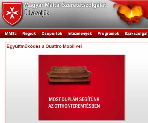 21 iszapkárosult családon segít a Magyar Máltai Szeretetszolgálat és a Quattro Mobili Eredményesen zárult a Magyar Máltai Szeretetszolgálat (MMSZ) és a Quattro Mobili első együttműködése: 2011. január 21-29. között összesen 21 használt, de jó állapotban lévő ülőgarnitúrát ajánlottak fel a Quattro Mobili vásárlói a vörösiszap katasztrófa károsultjainak.
