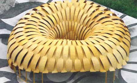 Az építési elv alapját az elasztikus hajlított rétegelt lemez képezte. Ezeket úgy kapcsolták össze, hogy egy teljesen pontos felosztás jött létre a hajlító illetve húzó igénybevételnél, így mindegyik húzó szegmens a mellette lévő szomszédos hajlító szegmens elasztikus formáját segíti tartani. Az így létrejött belső feszültség által megnőtt a szerkezet teherbírása, ez lehetővé tette, hogy az egész pavilon mindössze 6,5 mm vastag nyír rétegelt lemezből készülhessen el.