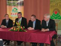 Megnyitották a Szent György-napi Agrárexpót Pápán pénteken. A vasárnap estig tartó mezőgazdasági kiállításon és vásáron 75 termelő és vállalkozó mutatja be termékeit a városi sportcsarnokban és a mintegy kétezer négyzetméternyi szabadtéri területen. V. Németh Zsolt, a Vidékfejlesztési Minisztérium államtitkára a megnyitót követő sajtótájékoztatón meghatározó jelentőségűnek nevezte azt, hogy a gazdák április 8-tól a gazdák benyújthatják a kérelmeket az egységes területalapú támogatásra. A beadási határidő május 16-ig tart - tette hozzá. Az összes kérelem alapján mintegy 180 ezer ügyfélről van szó országosan, s az agrárium 300 milliárdos támogatási összegéből 240 milliárdot tesz ki a területalapú - mondta az államtitkár, megjegyezve: a lehetőség megnyílása óta a jogosultak 10 százaléka igényelte a támogatást. Az államtitkár utalt arra is, hogy most zajlik a 2007-2013. közötti Új Magyarország Vidékfejlesztési Program félidei értékelése, s a tapasztalatok szerint a pénzforrások 80 százalékát már lekötötték. Az új kormány csupán 20 százaléknyi összeg felett rendelkezhet már - tette hozzá. Elmondta: 2007 óta a pályázók öt százaléka vitte el az agrártámogatási összegek több mint 60 százalékát. Ez olyan koncentrációja a fejlesztésnek, amely "nem kívánatos és példátlan is az Európai Unióban" - vélekedett V. Németh Zsolt, megjegyezve, hogy "nem a nagyok ellen vannak, hanem a kicsiket is szeretnék segíteni". Hangsúlyozta, hogy a kisebb üzemméretű vállalkozások számára is igyekeznek támogatást nyújtani, így például az elkövetkező néhány hétben két pályázati kiírás is megjelenik a tárca gondozásában. Az egyik már a jövő héten, s a mikro-vállalkozásokra vonatkozik, az összege pedig hétmilliárd forint, ezt az ötezer lakosnál kisebb, de nem városi településeken vállalkozók vehetik igénybe. Nemsokára megjelenik a turisztikai beruházásokra vonatkozó pályázat is - szálláshely-fejlesztésre, idegenforgalmi attrakciók létesítésére -, s különösen az agráriumhoz kapcsolódó fejlesztéseket támogatják majd; gasztronómiát, bor- és sajtutakat, lovasturizmust - tájékoztatott az államtitkár. Hozzátette, hogy erre négymilliárd forint áll rendelkezésre.