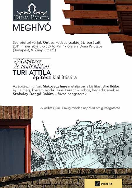 Az építész munkáit Makovecz Imre mutatja be, a kiállítást Bíró Ildikó nyitja meg, közreműködik Kiss Ferenc - koboz, hegedű, ének és Szokolay Dongó Balázs - fúvós hangszerek. Megnyitó: 2011. május 26-án, csütörtökön 17 óra
