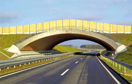 Az első vadhíd: egy kísérleti projekt iskolát teremt A fában rejlő jövőbeli lehetőségekre egy markáns példa a németországi Észak-Rajna-Vesztfáliai tartomány legfelsőbb építési hatóságának kísérleti projektje. A tartomány több mint 5 éve hozott létre egy fából épített úgynevezett vad-, illetve zöldhidat. E szokatlan és ambiciózus próbálkozás során egy olyan átkelőről van szó, mely a vadcsapások és az autópályák balesetmentes keresztezését biztosítja. Ez az építmény, mely 75 méteres szélességével egy fából készített alagúthoz hasonló, felülről teljesen le van szigetelve és földdel borítva. Egy innovatív fejlesztés a fahídépítésben. Miután a tesztfázis a tüzetes építményvizsgálatokkal lezárult, további építmények jöhetnek létre. Nemrég a német autóklub, az ADAC is számos új vadhíd szükségességét jelentette be, a súlyos ütközési balesetek számának csökkentéséért. Várhatóan egyre gyakrabban kerülhet elő az új építmények megalkotásánál e fából készített variáció.