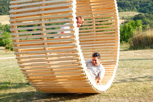 Szerdán indult el a Hello Wood Fesztivál, ami a 2010-ben megrendezett faépítészeti alkotóhét felturbózott utódja. Kilenc hazai és határon túli egyetemről érkeztek résztvevők a Veszprém megyei Csórompusztára, ahol az előző hét DEMO Wood gyerektáborának eredményeként már egy kész alkotás, egy óriási elszabadult mókuskerék várta a hallgatókat és a csoportvezetőket.