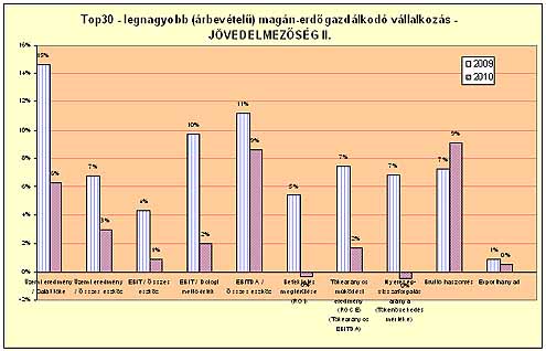 A 30 legnagyobb* árbevételű magántulajdonú, erdőgazdálkodó vállalkozás (cégnév szerinti sorrendben) 2010. évi legfőbb tényadatai.