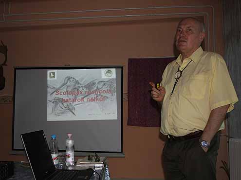Az összegyűlt lelkes csapatot - a szakmai elhivatottságon túl - szorosan összetartja a hosszúcsőrű szerelmetes madarunkhoz, az "erdő királynőjéhez", azaz az erdei szalonkához fűződő viszonyuk. A jelenlévők számára kiemelt jelentőségű téma szakavatott előadója Fluck Dénes volt, aki élvezetes és rendkívül informatív előadásában beszámolt az erdei szalonka európai léptékű monitoring vizsgálatairól, annak jelenlegi állásáról, gyakorlati praktikáiról és nem utolsó sorban annak lehetséges hatásáról a hazai szalonkavadászatra. Az előadás során megismertük a spanyol rádióadóval felszerelt szalonkák vonulási eredményeit, az időjárás hatását a szalonka-vonulásra és a svájci költés megfigyelési módszereket. Betekintést kaptunk a Vadászati Kulturális Egyesület Szalonka Klub és egy nemzetközi szervezet a FANBPO működésébe, mindennapjaiba és problémáiba egyaránt.