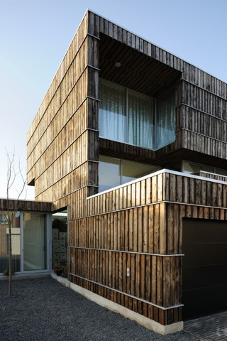Anyagok (újrahasznosítva) Igen sokféle anyagot alkalmaznak, amelyek mindegyike új ihletet nyújt, és ösztönzőleg hat a tervezésre és a kialakítás finomítására. Új formákra és újszerű szerkezeti megoldási módszerre volt szükség a fellelt anyagok beépítésekor. A fő szerkezet acélprofilból készült, ami textilgyári gépekből származik (a textilipar valamikor igen fejlett volt ebben a térségben). Eme anyagokból elégséges vas nyerhető a teljes villaépülethez. A főhomlokzat olyan fából készült, amit leginkább faforgácslap gyártáshoz használtak volna vagy tüzelésre. A (TKF) kábelgyárban nagy mennyiségű felesleges kábeldob volt, amelyek további használatra sérülésüknél fogva már nem voltak alkalmasak. A kábeldobokat alkotó faanyag azonban általában sérületlen volt, és szabványos méretű. Sok ilyen kábeldobból kinyert bőséges faanyagból készült el az épület homlokzata.