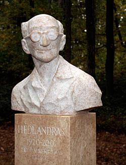 "Jó volt együttdolgozni Hédl Andrással. Jó volt, hogy lehetett dolgozni, azt csinálni ami az erdő fejlődését, értékesebbé, gazdagabbá tételét elősegíti. Abban az időben, az 50-es, 60-as években , a Soproniak úgy tekintettek a város környéki erdőkre mintha az övék volna. Az erdő a miénk - mondták. Jelképesen birtokoltak is egy-egy erdőterületet - külön a pedagógusok, a turisták, a sörösök, a textilesek, az öntödések, s a többiek. Ezt gondozták, rendben tartották, ide kirándultak. Hédl András segítette ezt a mozgalmat. Az Erdészet részéről lelkesen dolgozott a turistautak, tanösvények, esőbeállók, erdei tornapálya és autóspihenő kialakításán, de a zenedélelőttök, a Dalos-hegyi hangversenyek megszervezésén is. Lóháton járta az erdőt. Görbehalomban élt erdész-szolgálati lakásában, s innét járt be az Erdészetre, irodájában, s az itteni szolgálati helyiségben tartotta az eligazításokat is. Nagy feladata volt a 40-es évek végén az aknazár határsávjának kialakítása, ami Ágfalvától - Harkáig 40-50 m szélességben végighúzódott a Soproni hegység erdein. Itt az Ő felelőssége volt a fakitermelés irányításáról kezdve a több száz fő munkás és katona élelmezéséig szinte minden. Sokszor emlegette, hogy ez az időszak nagyon megviselte és az erdő rombolása érzelmileg is súlyosan érintette. "Feleségem segítőkészsége nélkül nem éltem volna túl ezt az időszakot" - mondogatta.. Másik nagy feladata volt a TSz-ek megszervezése után, a szerfás állattartó épületek faanyagának előkészítése. Hatalmas tömegben érkezett ugyanis a faanyag és Szovjetúnióból, s az Erdészet fatelepén ebből kellett gerendát és más felhasználható terméket gyártani. A szállítást, rakodást, tárolást és a többnyire Újkérről bejáró ácsok, faragók munkáját mintegy két éven keresztül Hédl András irányította úgy, hogy emellett az erdészetnél fölmerülő egyéb fahasználati munkákat sem hanyagolhatta el." Erdész kollegái tisztelték és szerették. Részükre minden esztendőben szervezett összejövetelt a Hidegviz-völgyi vadászházban, ahol a szakmai eredmények kiértékelése után a pisztrángsütés sem maradt el. Bánfalvi Mátyás, Bratl Antal, Dorn Lajos, Hajdu Ferenc, Kiss Zoltán, Kocsis Imre, Kőbányai Károly, Major Sándor, Mihályka László, Princes József, Pölz János , Simon Mihály kerületvezető erdészek és mások is a szakszemélyzetből, képezték azt a szakmai gárdát, amely hivatva volt az Erdészet céljait megvalósítani. Kevesen tudják, hogy Hédl András milyen fontos és veszélyes feladatokat vállalt 1956-után, a nyugatra menekültekkel való kapcsolattartásban. A Stubnya család nagyszülei ugyanis a Trianoni határral kettévágott berenbergi bányatelep ausztriai oldalán, Hermessel szemben Ilonaaknán éltek, közvetlenül a határ mellett álló házukban. Őket keresték fel a menekültek és juttattak át üzeneteket segítségükkel a határ-menti nyomsáv túloldalára, amelyeket Hédl András továbbított a rokonokhoz, ismerősökhöz. A már írásban is megjelent visszaemlékezés szerint egy ízben egy kisgyermek szüleihez való kijuttatásában segített, akit aztán hozzátartozói - a levelezés és közvetítés után - ruhás csomagnak álcázva adtak fel a GyESEV pályaudvaron tranzitként áthaladó oszrák vonatra. Hédl András az ember, életével jelesre vizsgázott a nagy megmérettetésben. Megérdemli, hogy az utókor szeretettel és tisztelettel emlékezzék rá. Szobra itt áll a soproni erdők szívében és mindannyian tudjuk, hogy ez az emlékmű Bandi-bácsi mellett a többi soproni erdészé is, akik közül Ő kiemelkedett, de akiket Ő soha nem feledett, s jelképesen itt vannak körülötte Mindannyian. Jó Szerencsét! Üdv az Erdésznek !