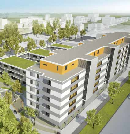 A Bécs 22. kerületében, Donaustadtban épülő társasház Ausztria első többszintes fa bérháza. Ezt a részt a Schluder Építésziroda, a hozzá kapcsolódó három háromszintes részt pedig a Hagmüller Építésziroda tervezte a "Faépületek a városban" elnevezésű pályázat keretében.