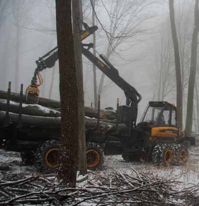 A Pilisi Parkerdő kollégái elsőként bemutatták, hogy milyen szempontokat kell figyelembe venni egy fa kidöntésénél. A döntött fa lehetőleg ne sebezze meg más fa kérgét, és olyan helyre essen, ahol kevés kárt tehet a foltokban felnövekvő, fiatal facsemetékben. A kidöntött, feldarabolt fákat egy Finnországból vásárolt, különlegesen mozgékony, az erdőtalajon nagy kerekeivel könnyen mozgó ún. közelítőgéppel (forwarderrel) szállítják ki. (Közelítésnek nevezzük a faanyag erdőből történő kiszállítását.) A gépkezelő a hosszan kinyújtható markoló segítségével felemeli a rönköket, felterheli a gép rakfelületére és könnyedén kimanőverez vele az erdészeti útig. Így, a rönkök vonszolása nélkül sokkal kevésbé sérül meg az erdő talaja. A nehezebben megközelíthető helyekről, erős műanyag-elemekből megépített csúszdasorral lehet kiszállítani a fát. Bár a megoldás nagyon újszerűnek tűnik, fából készült csúszdákat már régen is építettek az erdészek. A mai, műanyag erdészeti csúszdák igazi előnye az áthelyezhetőség. Mint megtudtuk, az egyik leghagyományosabb módszerrel, a lovas közelítéssel is dolgozik még egy család a környéken.