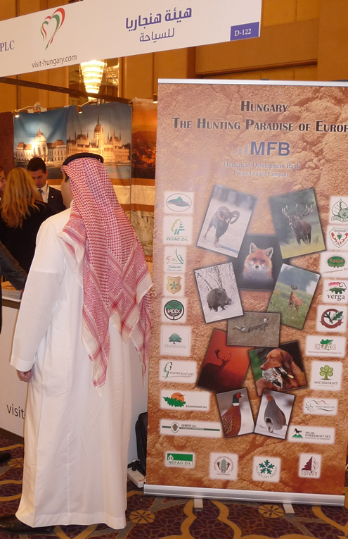 A kiállítás a Szaúd - arábiai Királyság gazdagságát és regionális vezető szerepét hirdető 300 méter magas szimbolikus épületben, a Kingdom Centerben található Four Seasons öt csillagos luxusszálloda legnagyobb rendezvénytermében volt. A kiállításra ellátogató szaúdiak és családjaik mindegyike azért érkezett, mert a közel- vagy távolabbi jövőben utazni akar és fog, így mindegyikük potenciális vendéget jelentett a kiállítóknak. A magyar vadászati portfólió bemutatkozása azért is bizonyult jelentősnek, mert az egyébként "csak" utazási kiállításon kizárólag a mi standunk kínált vadászati lehetőséget is. Számos vendég kifejezett érdeklődéssel fogadta a vadászati lehetőségek széles magyar tárházát. Az afrikai vadász szafarikhoz szokott érdeklődők a bemutatott videók és fényképek, valamint az átnyújtott angol nyelvű erdőgazdasági anyagok és árlisták megtekintése után nagy lelkesedést mutatott. Amennyiben ez kifejezhetője lehet az érdeklődés mértékének, a külön erre a kiállításra készített, részben arab nyelvű, fent említett vadászbrosúra már a kiállítás utolsó napja előtt teljesen elfogyott, pedig azokat csak olyan érdeklődőknek adtuk, akik kifejezett és egyértelmű érdeklődést mutattak a magyar vadászati lehetőségek iránt. A kiállítás utolsó napjára a kiküldött egyéni erdőgazdasági anyagok is teljesen elfogytak. A négynapos kiállítás személyes tapasztalataként elmondható, hogy a magyar állami vadászterületek új és érdekes célpontjai lehetnek a jövőben az arab vadászvendégeknek is, amennyiben a rájuk irányuló figyelem nemcsak egyszeri, hanem tartós. Bár a szkeptikusok sokszor teszik fel ugyanazt a kérdést, mint az amerikai és más piacok esetében - ha Némi hozzáállásbeli változással és felépített tartós piaci összpontosítással, valamint a megfelelő direkt kapcsolatok fokozatos kiépítésével a kimagaslóan fizetőképes Szaúd-Arábia közelebb kerülhet Magyarország vadászterületeihez, mint gondolnánk. Forrás: Gyulaj Zrt.
