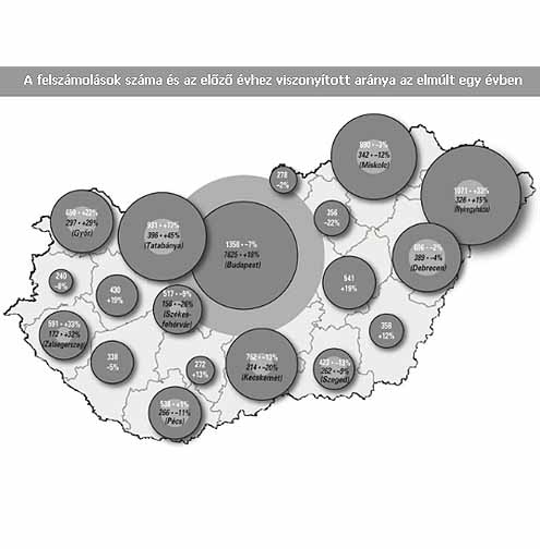 Májusban minden korábbinál több, összesen 2203 céggel szemben indult felszámolási eljárás Magyarországon. Ezzel nemcsak az egy hónapon belül bedőlő cégek rekordja dőlt meg, de minden eddiginél hamarabb, már június első napjaiban elérjük a tízezredik éven belüli felszámolást. 2011-ben július 7-én tették közzé a tízezredik felszámolást, idén ez minden valószínűség szerint június 5-én, kedden megtörténik. A válság előtti utolsó békeévben, azaz 2007-ben egész évben nem számoltak föl ennyi céget Magyarországon.