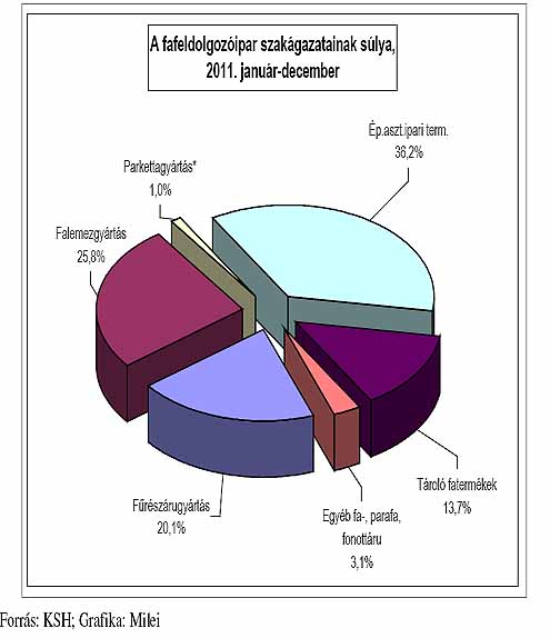 A fafeldolgozó-ipar termelése 2011-ben 11,6%-kal csökkent az egy évvel korábbi 18,2%-os növekedéshez képest. 2011 decemberében 5,7%-kal nőtt a termelés az előző év 11,4%-os növekedés bázisán. A szakágazat hazai értékesítése 2011. egészében 19,5%-kal csökkent, decemberben pedig 9,1%-kal bővült. A múlt évi exportértékesítés 5,3%-kal mérséklődött, decemberben pedig a szakágazat kivitele 12,4%-kal növekedett az egy évvel korábbihoz képest.