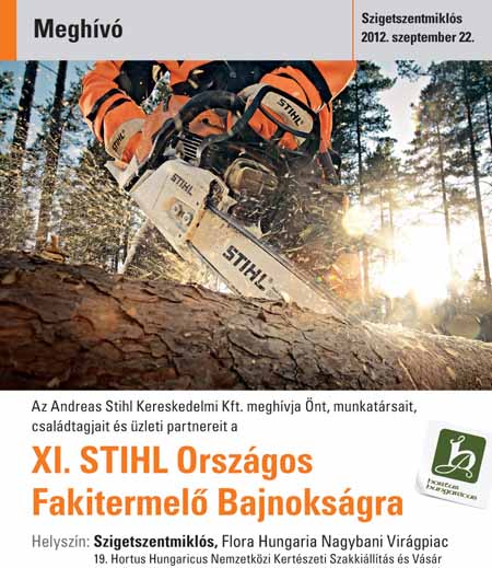 Az Andreas Stihl Kereskedelmi Kft. meghívja az érdeklődőket, családtagjaikat és munkatársaikat a szeptember 22-én rendezendő XI. STIHL Országos Fakitermelő Bajnokságra, Szigetszentmiklósra.
