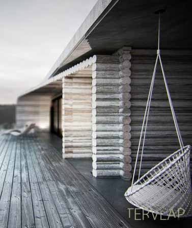 A tervezési nehézség abból adódott, hogy próbálták megőrizni a fa melegségét és otthonosságát, amit egy rönkház nyújthat. A kezdeti ielgondolások után azonban egy "S" betűt formázó vasalt betonhéj alkotja a ház födém és tetőszerkezetét. Ezáltal a fák inkább dekorációs célt szolgálnak, mintsem tartószerkezetit.