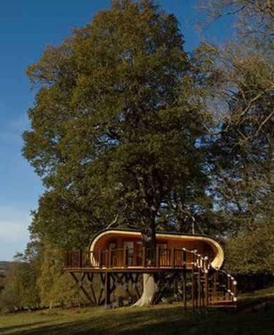"A szerkezet természetes alapanyagok felhasználásával készült, és 5 nap alatt felállítható. A terep megfelelő előkészítésével minimális mértékben van hatással a természetes környezetre. Négy személy is kényelmesen elfér a 6×8 méteres beltérben, ahol összevont konyha, étkező és nappali helyiség található. A folyamatos tetőzettel borított ovális forma vizuálisan összeköti a faházat a kinti környezettel, ablakai és a mélyen vágott eresz folytán."