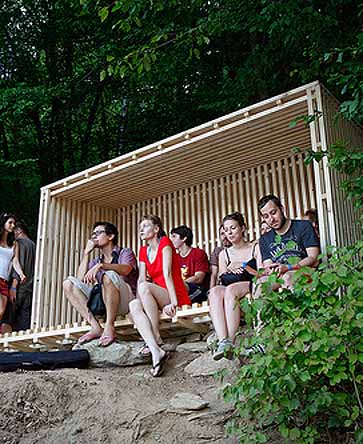 Égbolt, szél, zene, tűz, kocsma, asztal: néhány azon dolgok közül, amelyek kohéziós szerepet töltenek be egy közösség életében - mondják a Hello Wood idei workshopvezetői. Közülük ketten, Lukasz Pastuszka és Jakub Majewski a Moomoo irodából úgy gondolják, életünkben az egyik legfőbb kihívás, hogy a globalizáció, a digitális világ és a felgyorsult élet elfeledtette velünk a "könnyű életet". A cél, hogy visszataláljunk az érzékeinkhez. Senses - Levels - People (Érzékek - Szintek - Emberek) munkacímű projektjük során egy olyan teret fognak létrehozni, ahol az érzékelés felerősödik, és az emberek természettel való interakciója intenzívebbé válik.