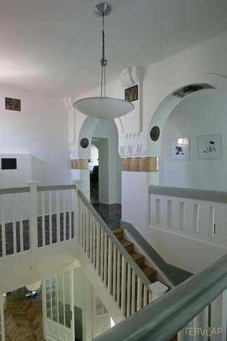 A díjazott pályázat a kiállításon kiemelt helyen, négy tablón szerepelt. A tervezés kimagasló színvonala mellett a pályázat installálása is példaértékű. A tablókon 5-6 kép, szöveg és három alaprajz a bemutatást minden részletre kiterjedően, ugyanakkor áttekinthetően dokumentálta a zárterkély gazdagon díszített ólomüveg ablaksorától - amelynek parapét részén az öntöttvas radiátorok függőleges osztását imitáló kiképzéssel oldották meg - az új belső lépcsők konstruktív és látványos kialakításán át a tetőtér ácsszerkezeti csomópontok hangsúlyos megoldásáig. A villát eredetileg Tauszig Béla (1883-1973) és Róth Zsigmond (1885-1970) építészek tervezték. Ezt a tényt a villa falán emléktábla rögzíti. A belsőépítész tervezők a Komp Design munkatársai.
