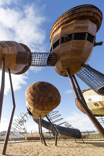 Az újonnan avatott játszótér változást jelent az eddigi hagyományos játszótéri környezetre nézve olyan óriási makkokat formáló mászházak létrehozása révén, amelyek úgyszólván az égben lebegnek, és hatalmas banksia fatobozokkal, amelyek az avarba ágyazottak.