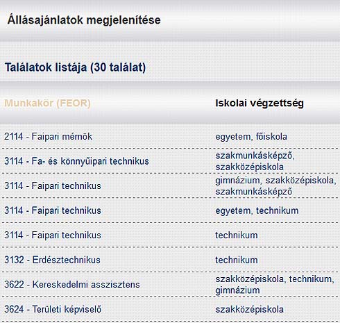 FATÁJ teszt: Cikkünk írásakor összesen 3851 álláshely-ajánlat érhető el a rendszerben. A gyorstesztünkben a "faipar" kifejezésre 30 állásajánlati találat jelent meg. További keresési kulcsszavak és találatok: asztalos - 65; bútor - 42; fafeldolgozó - 7; parketta - 1.