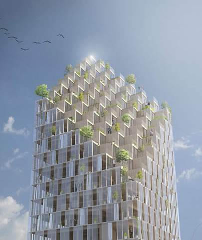 Miközben a pályázati kiírást elkészítették a jövőbeni intelligens lakásépítésre vonatkozólag, amely párbeszédet teremtene a jövőbeni lakásépítésre nézve, és fenntartható lakásviszonyokat teremtene sűrűn lakott lakókörzetben, a Berg/C.F. Moller tervezőiroda legkiválóbb minőségű fával kíván megépíteni Stockholm jelképeként egy 34 szintes felhőkarcolót.