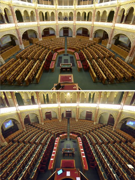 A teremben kicserélték az izzókat is, kitisztították a szellőzőrendszert, csúszásmentesítették a kő járófelületeket, és lefestették a szellőzőrácsokat. A helyiség három hónapos munka után, március végére készült el. Az ülésterem informatikai megújítása 13 millió forintba került - számolt be az újságíróknak Sóváry Zoltán, az Országgyűlés Telekommunikációs Osztályának vezetője. A változásból a képviselők semmit nem érzékelnek majd - tette hozzá -, erre azért volt szükség, mert a tizennégy éve kialakított korábbi verzióhoz már nem gyártottak alkatrészeket, és a szoftverek is megújításra vártak. Elmondta: a fa bútorzattal berendezett terem mind tűzrendészeti, mind áramellátási szempontból alkalmatlan arra, hogy a képviselők laptopjaihoz áramellátást nyújtsanak, így erre a csereakkumulátor biztosítása volt a kézenfekvő megoldás. Forrás: MTI