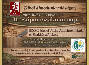 Tovább 1 perc olvasási idő Események Faipar Oktatás Szegeden: II. Faipari Szakmai Nap 2026. április 17-ére szervezte meg az SzSzC József Attila Általános Iskola és Szakképző Iskola a II. Faipari Szakmai… 2026.04.02.