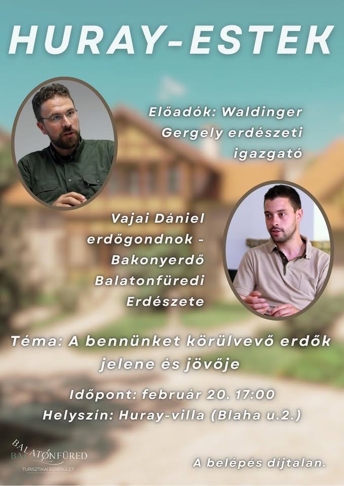 Waldinger Gergely, a füredi erdészet új igazgatója már gyermekkorában sok időt töltött a természetben, hivatásául pedig olyan tevékenységet választott, ami a hobbija is egyben. A soproni egyetem elvégzése után erdészeti hatóságnál dolgozott, majd a Pilisi Parkerdő Szentendrei Erdészetéhez került. A főváros közelében, a társadalmilag erősen igénybe vett, természetvédelmi értékekben gazdag Dunakanyarban erdőgondnokként szerzett fontos tapasztalatokat. Egy olyan időszakban vette át a Balatonfüredi Erdészet vezetését, amikor a klímaváltozás és a társadalmi igények számos kihívás elé állítják az egész erdészeti szakmát. A társadalom részéről mindenképpen nagyfokú türelemre lesz szükség, hogy a dinamikusan változó körülmények közepette a legjobb erdészeti szakmai döntések születhessenek meg, a megoldások keresésében pedig a szakma nyitott az ismeretterjesztésre és a társadalmi párbeszédre is. Ennek részeként érkezik az igazgató a Huray-villába kollégájával, Vajai Dániel erdőgondnokkal.